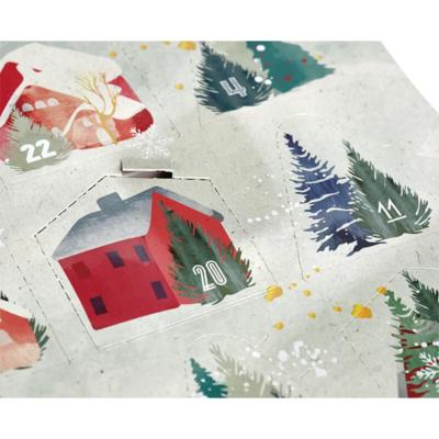 • Coffret Vide Carton Carré Calendrier De l'Avent Campagne Enneigée