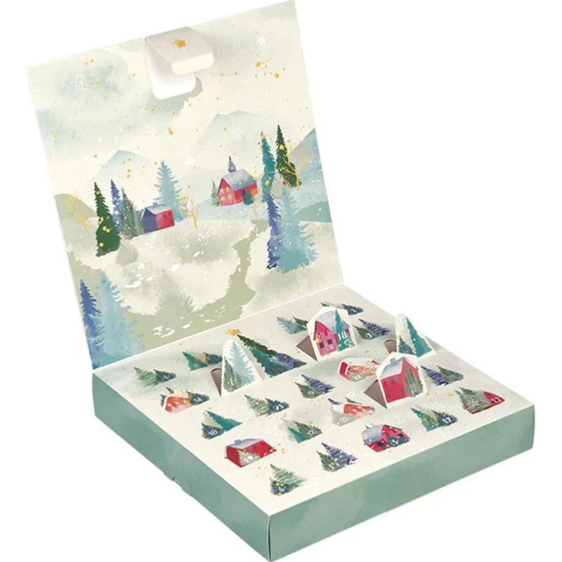 Coffret Vide Carton Carré Calendrier De l'Avent Campagne Enneigée