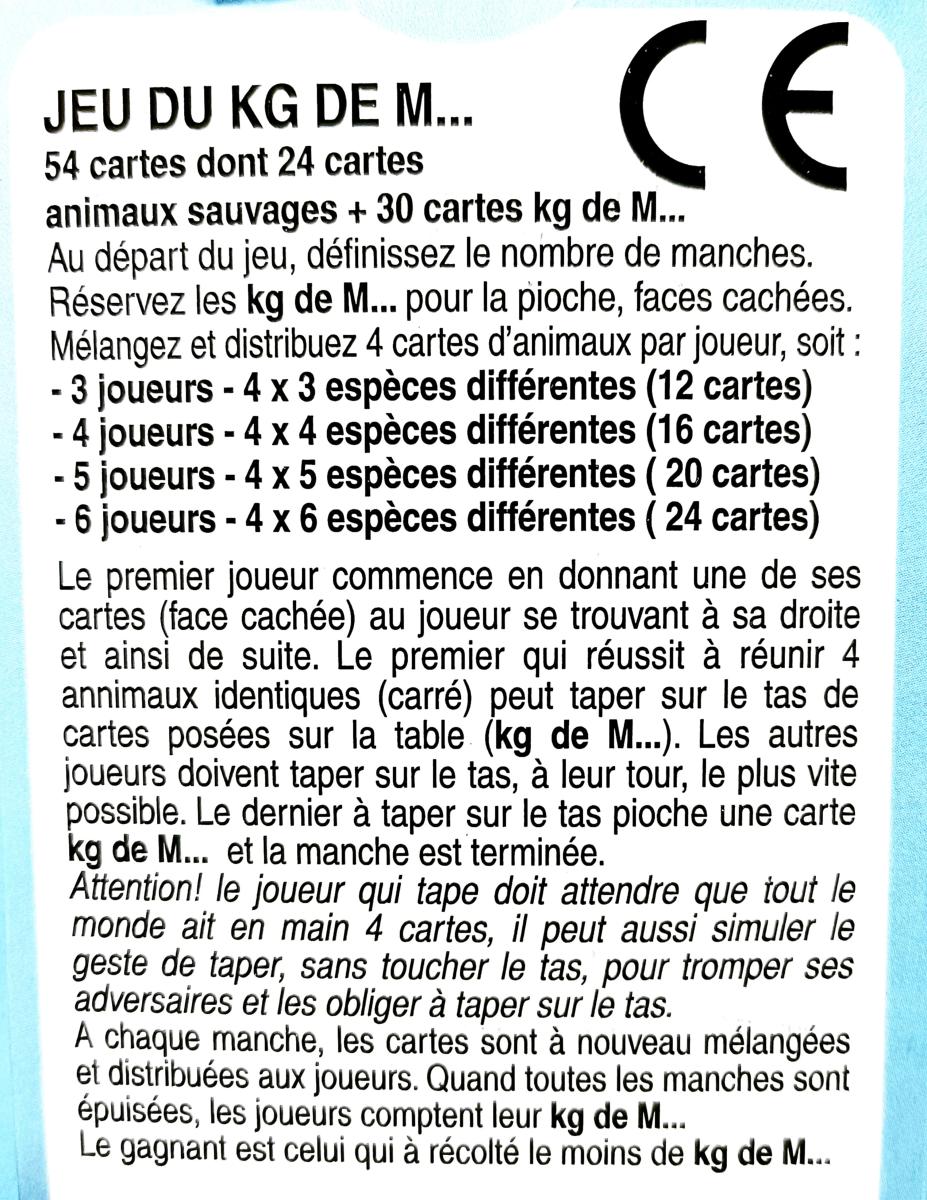 Jeu du kg de M... - 54 cartes dont 24 cartes animaux sauvages + 30 cartes kg de M... - 3 à 6 joueurs