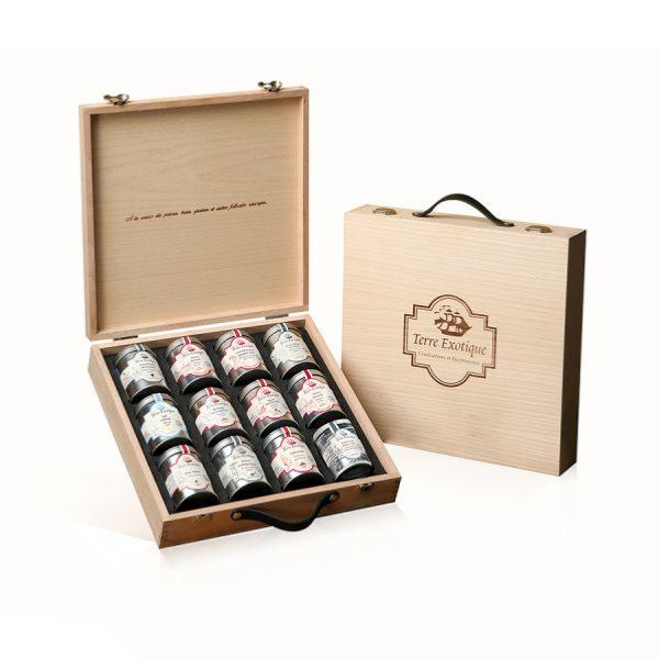 Découvrez dans cette élégante valise en bois une sélection de saveurs inédites, qu'elles soient piquantes, douces ou épicées 😍❤