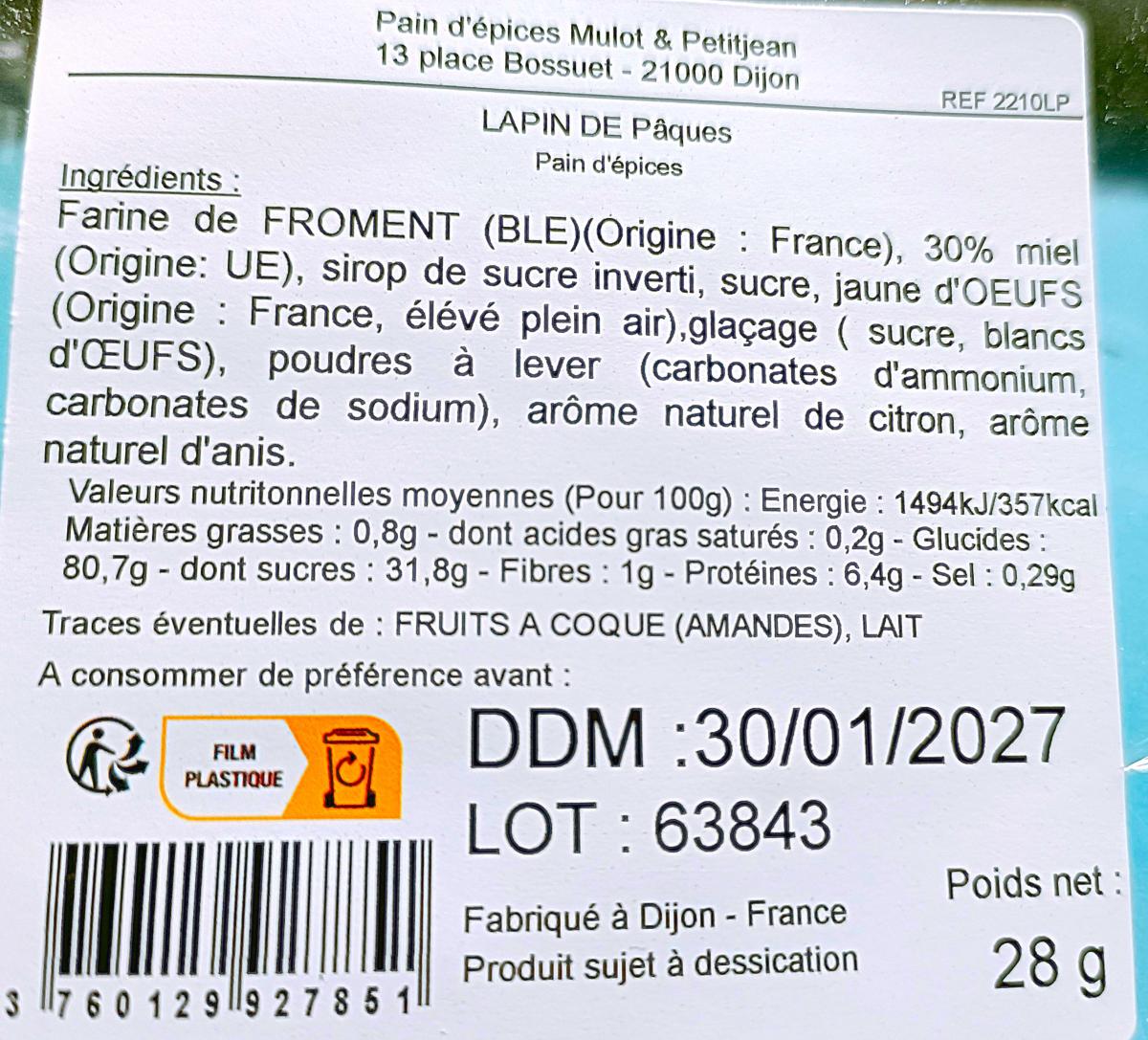 • Lapin de Pâques En Pain d'Epices